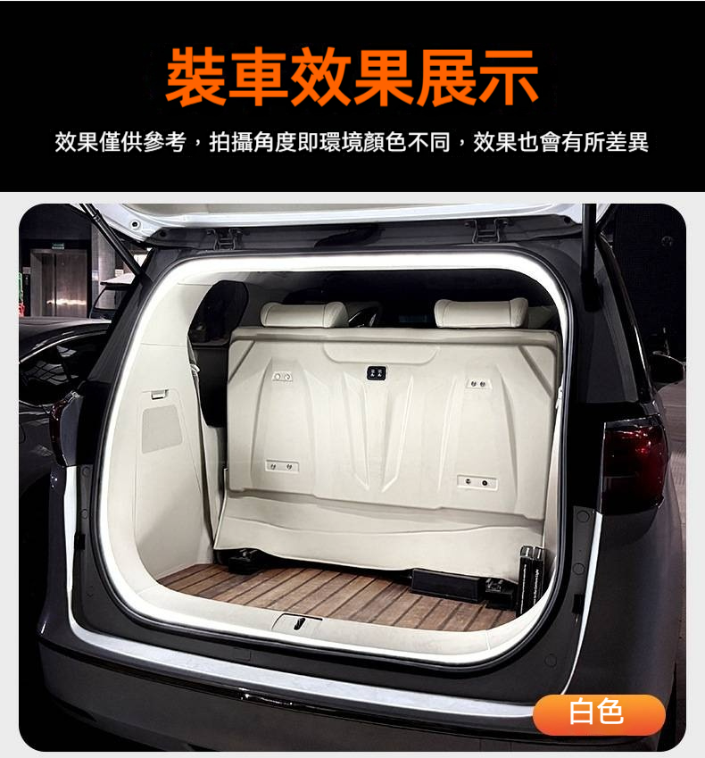 高亮度 LED 燈珠,後備箱從此零死角,拿放嬰兒推車、露營裝備超清楚。