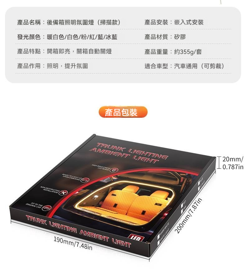 商品名稱: 汽車後備箱 / 尾箱流水氛圍燈條