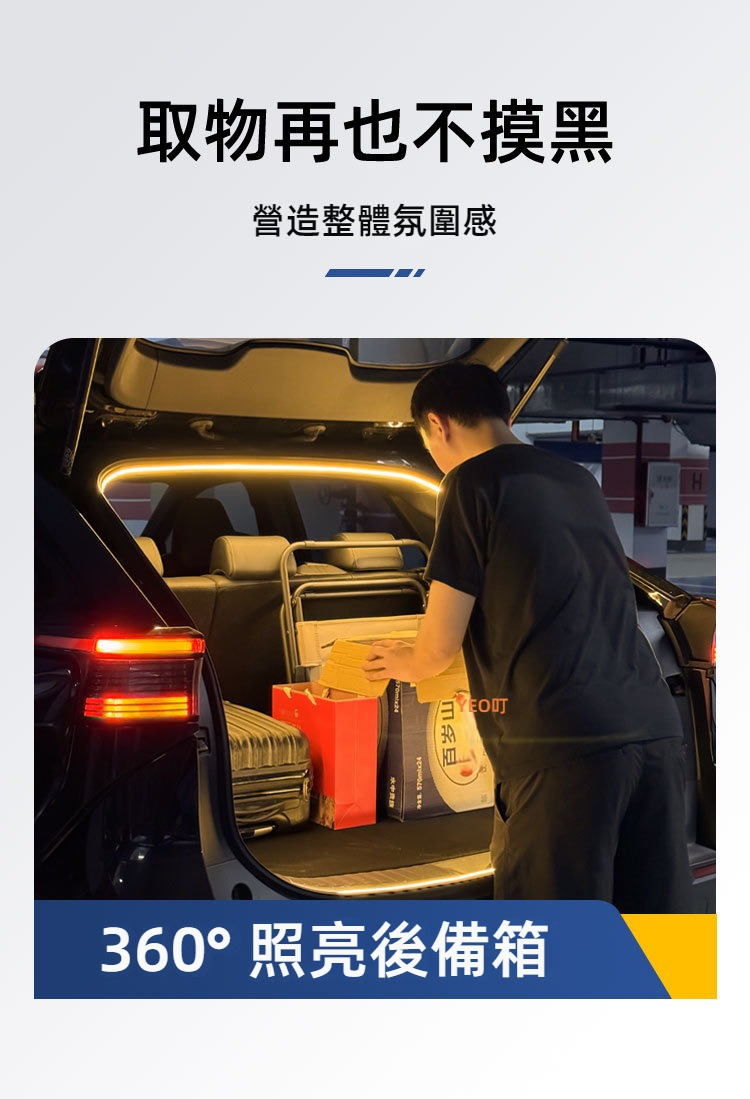 後備箱燈條:不僅實用,還能增添後備箱的氣氛,適合露營、小聚時使用,營造溫馨氛圍。