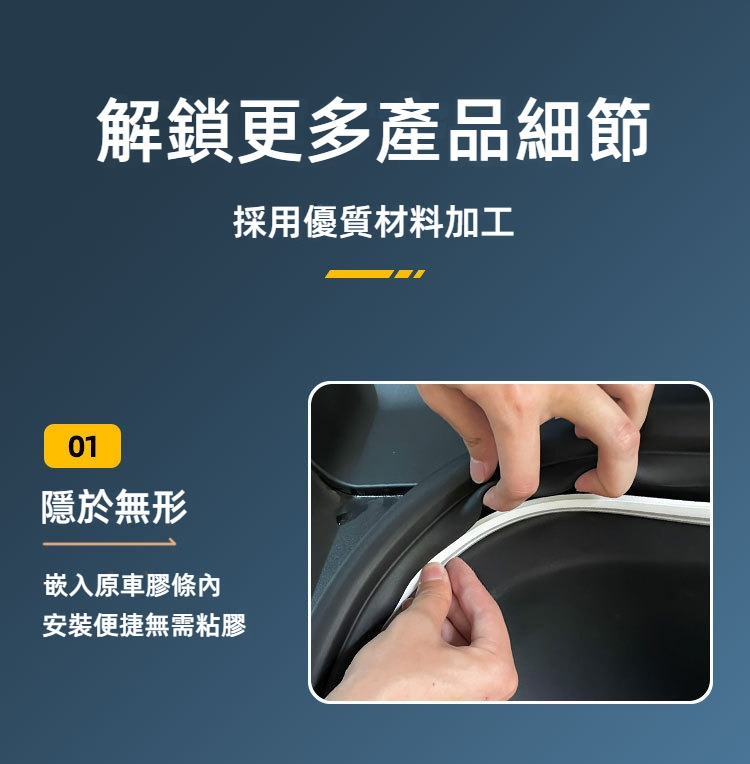 ✅ 免工具,幾分鐘安裝:嵌入式設計,輕易塞入原車膠條。