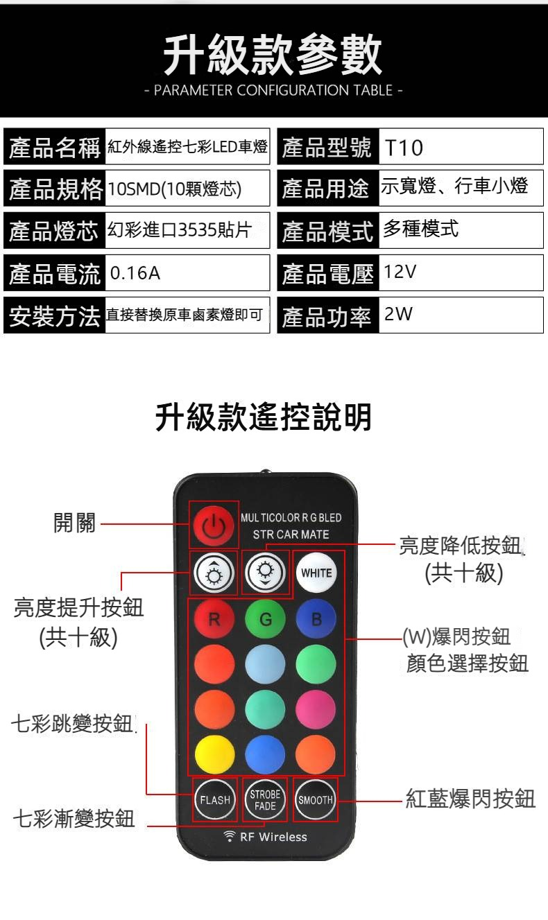 🔥 一鍵變色!讓愛車夜晚帥到沒朋友!T10 遙控示寬燈,炫彩爆閃隨你切換。