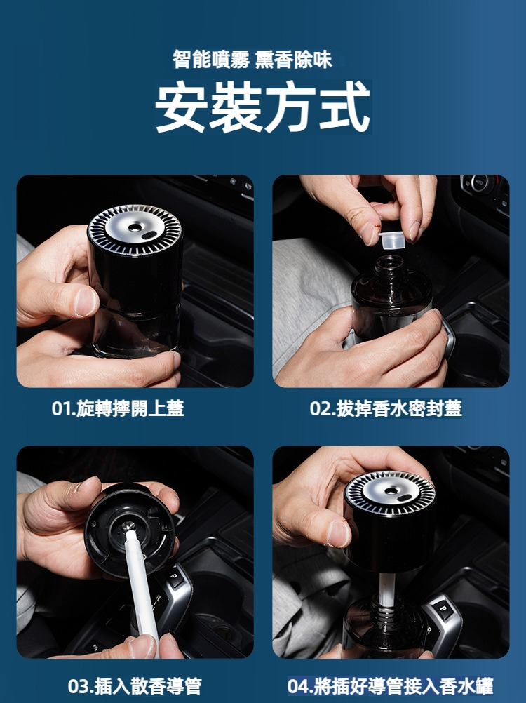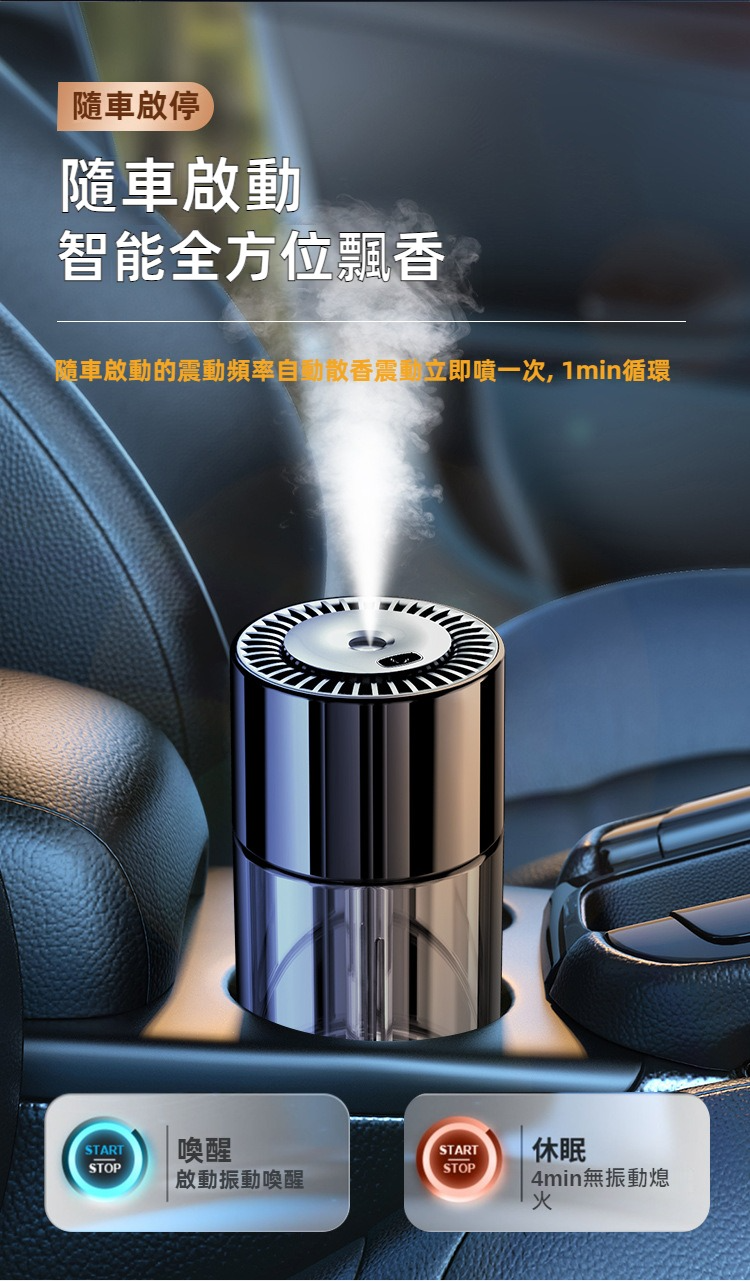 AI智慧汽車香薰機 JG優品 隨車啟停噴霧除異味 車用質感香氛