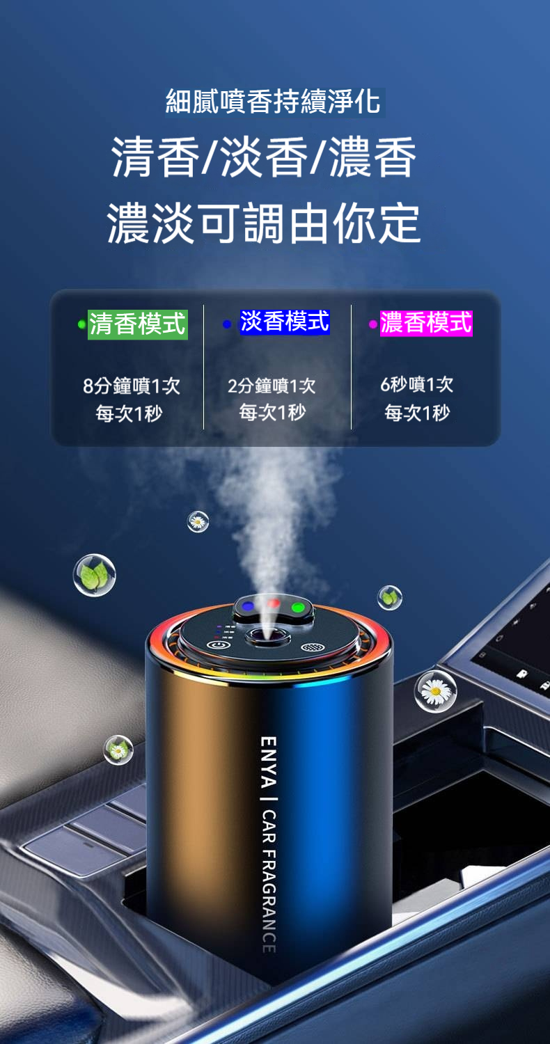 香氛散發:可均勻釋放香氛,迅速去除車內異味,保持車內空氣清新,持久散發淡淡香氣。