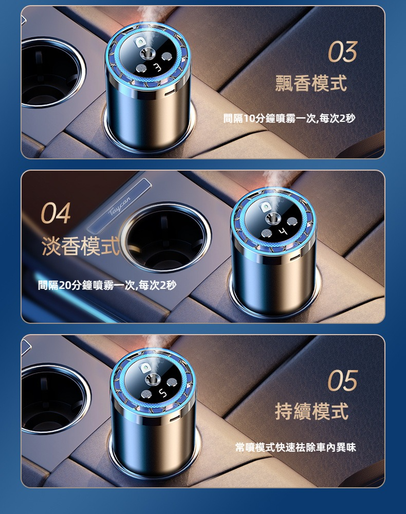 多功能設計:集香薰、氛圍燈、除異味於一體,提升車內空間品質。