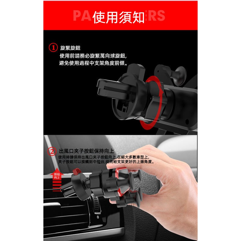 重力感應自動夾緊:隨著手機重量自動夾緊,不需手動調整,讓手機在車上穩固不滑落。