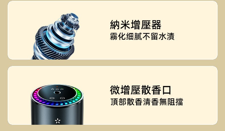 自動噴霧:高效香薰,三檔噴霧調節,保持車內清新香氣。