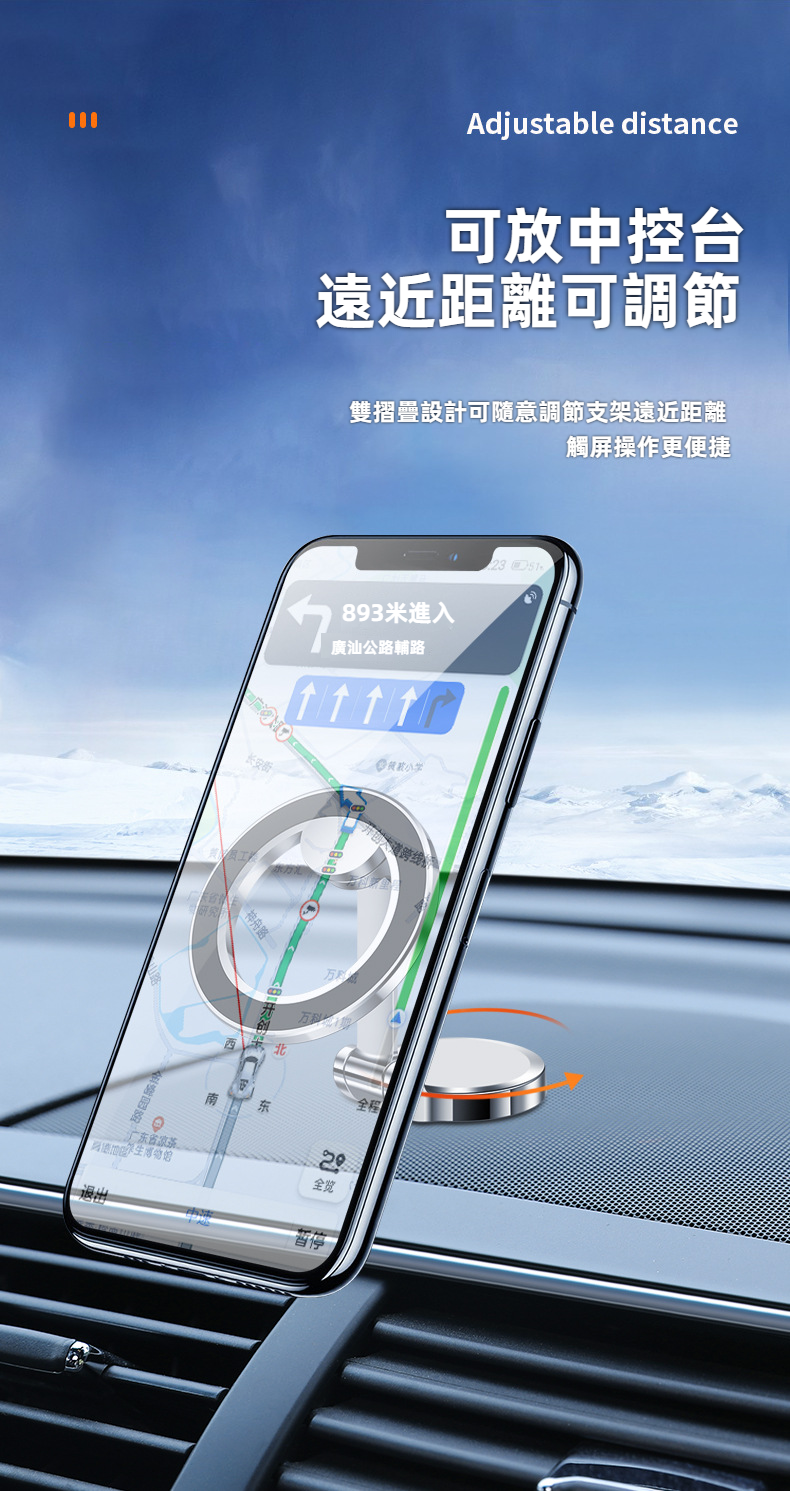 這款車用手機支架兼具螢幕支架與導航功能,採用磁吸式設計,穩固耐用,支持1080°自由調整角度,