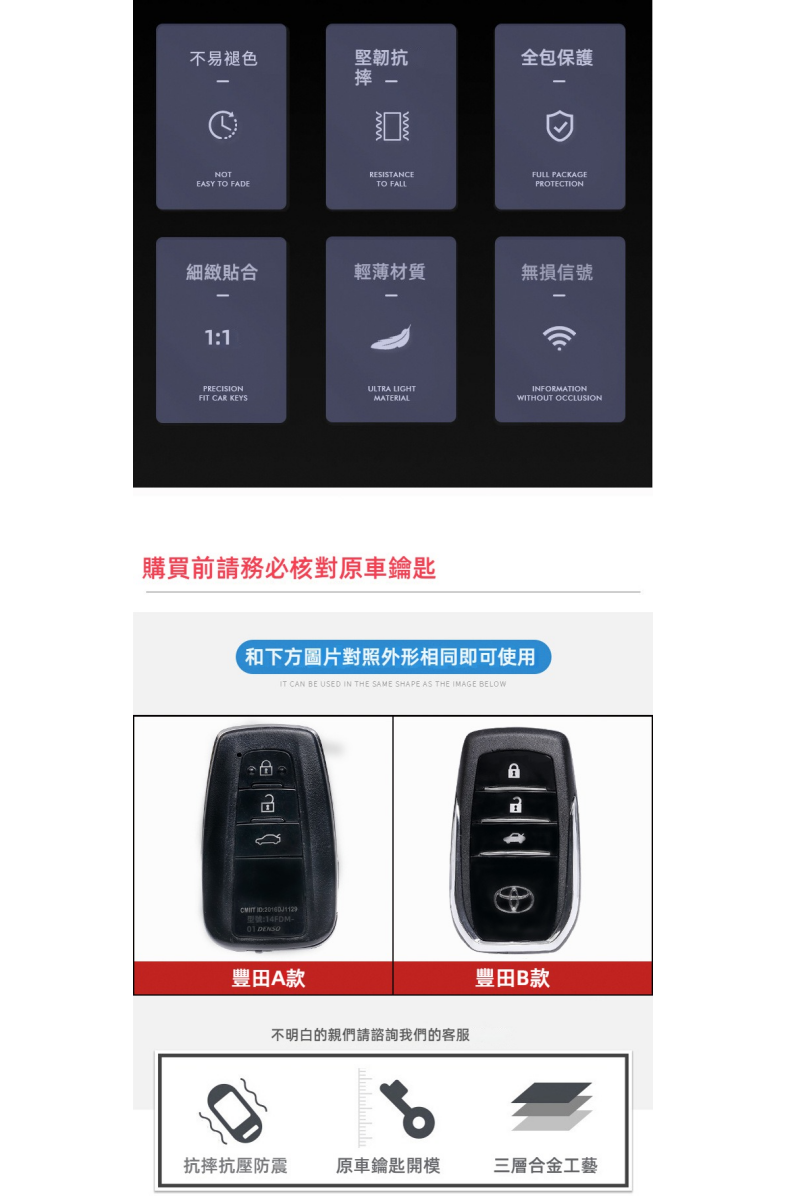 ✔ 完美貼合:專車專用,精準開模,完全符合豐田車型鑰匙尺寸。