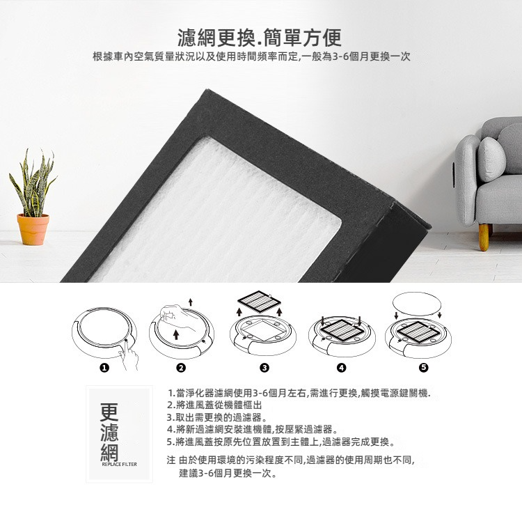 太陽能車用空氣淨化器 負離子高效濾網 淨化PM2.5異味除煙
